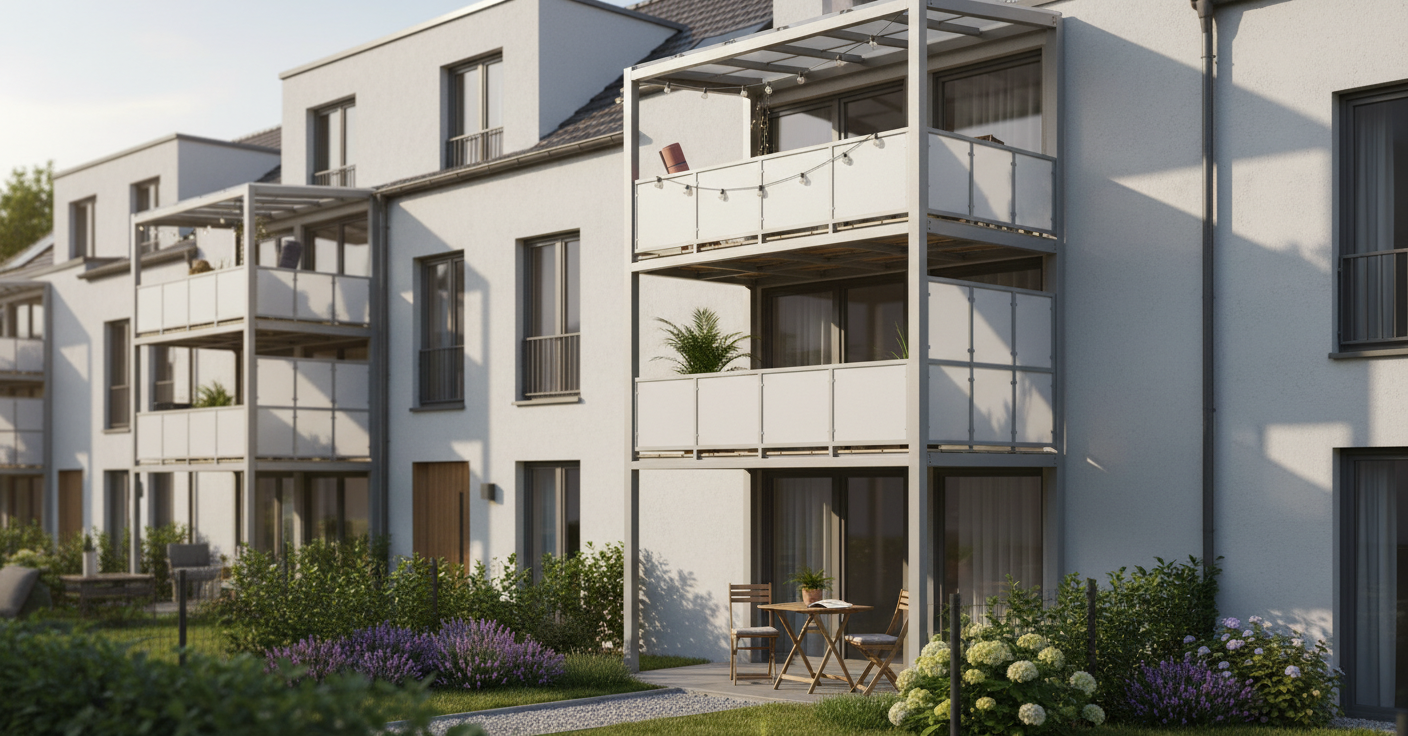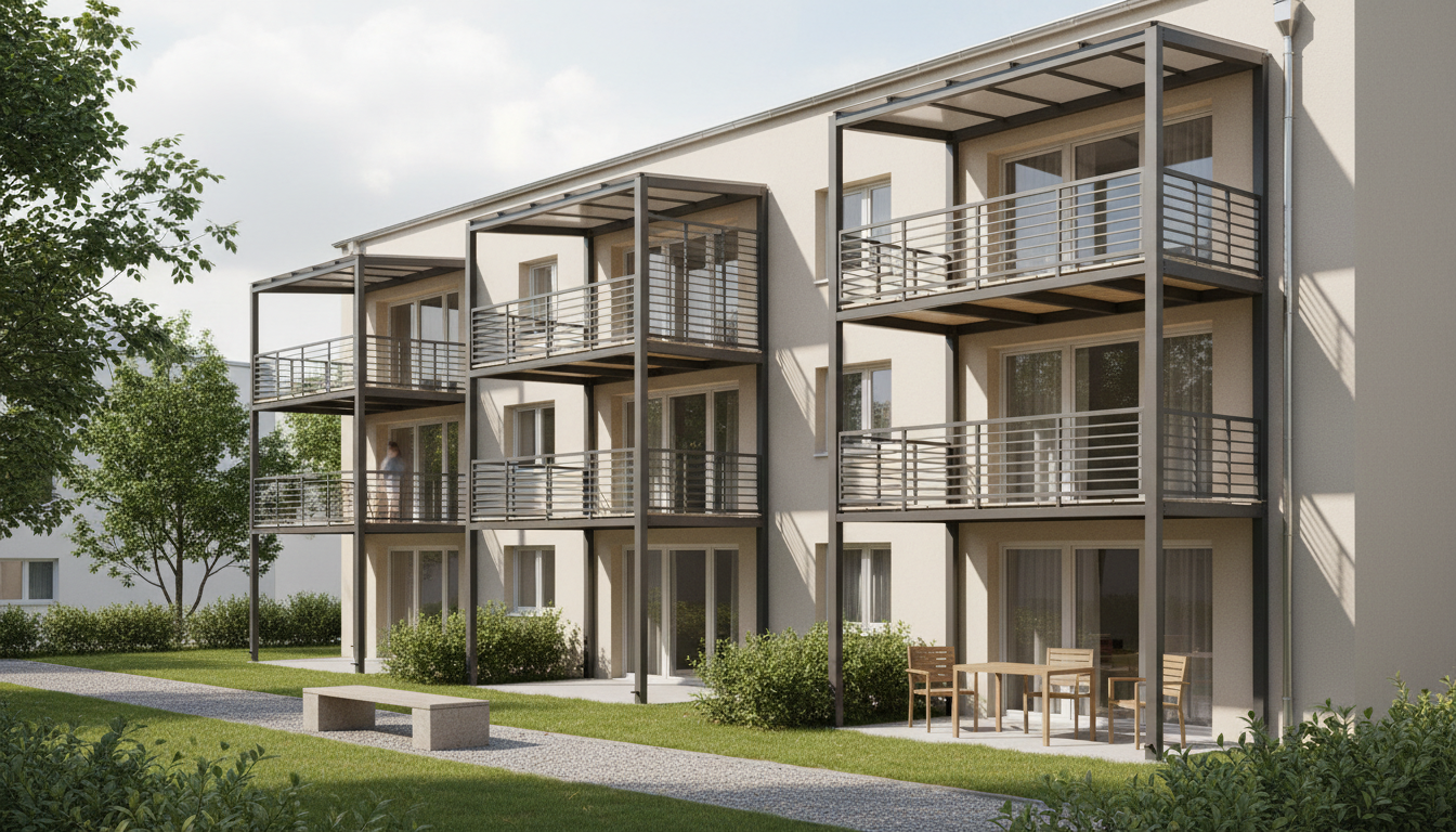Fluchttreppen, Anbaubalkone, Überdachungen und Vordächer