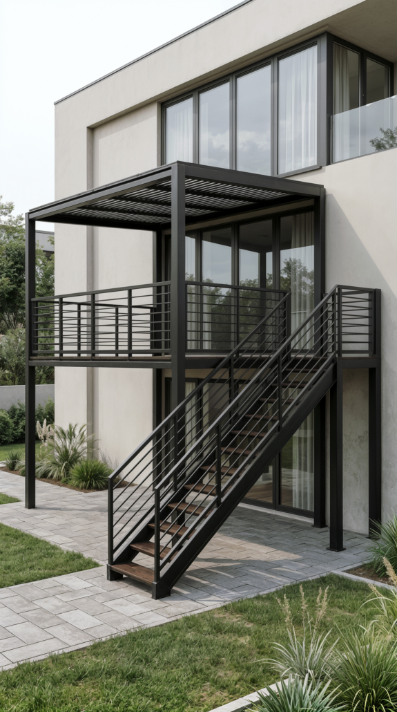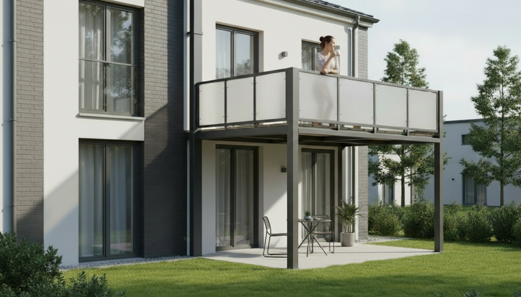 Fluchttreppen, Anbaubalkone, Überdachungen und Vordächer